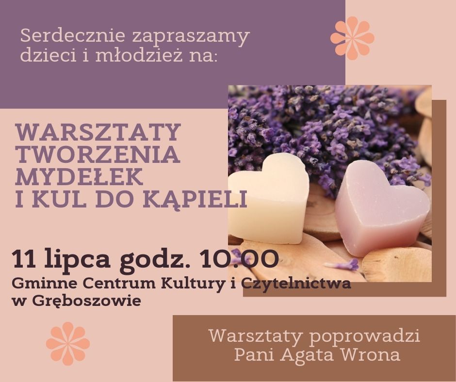 W miesiącu lipcu w naszej placówce odbywa się szereg zajęć artystycznych. Pierwsze z nich to warsztaty tworzenia mydełek i kul do kąpieli dla dzieci, które odbyły się 11 lipca. Była to doskonała okazja do poznania tajników domowej kosmetyki naturalnej i zabawy z aromatycznymi składnikami. Warsztaty prowadziła pani Agata Wrona- artystka, doświadczona instruktorka i pasjonatka zdrowego stylu życia. Dzieci miały okazję samodzielnie wykonać i ozdobić własne mydełka i kule do kąpieli, a także dowiedzieć się, jakie właściwości mają różne olejki, zioła i barwniki. Każdy uczestnik otrzymał na koniec zestaw swoich wyrobów do zabrania do domu. Warsztaty cieszyły się dużym zainteresowaniem i pozytywnymi opiniami zarówno dzieci, jak i rodziców.